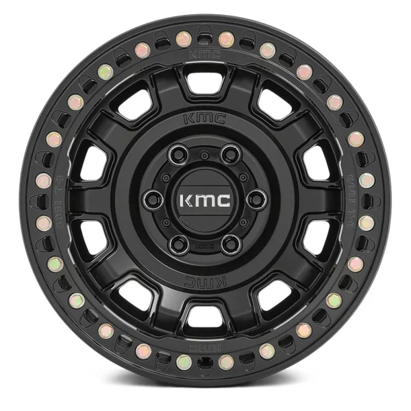 17″ KMC WHEELS KM236 TANK BEADLOCK SATIN BLACK FINISH RIMS