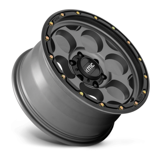 17" KMC WHEELS KM541 DIRTY HARRY SATIN GRAY WITH BLACK LIP FINISH RIMS