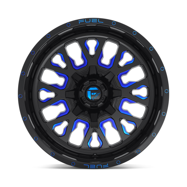 18" FUEL WHEELS D645 STROKE GLOSS BLACK WITH CANDY BLUE OFF-ROAD RIMS