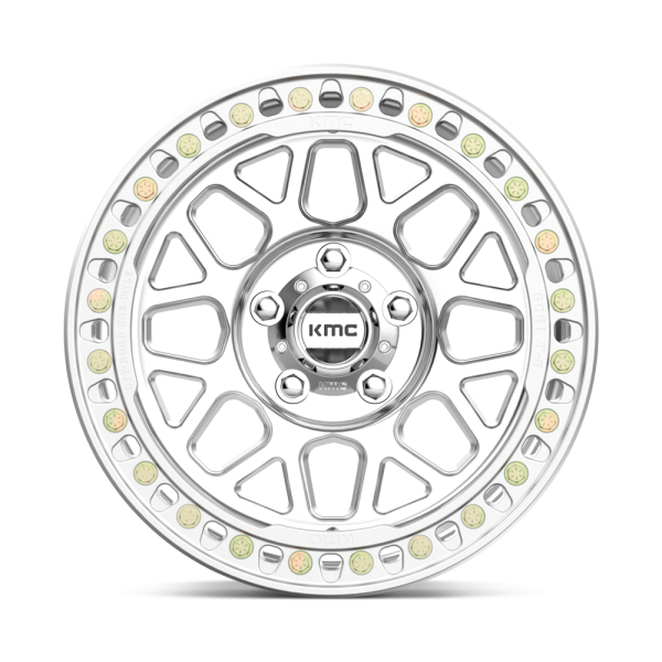 18″ KMC WHEELS KM235 GRENADE CRAWL BEADLOCK MACHINED FINISH RIMS