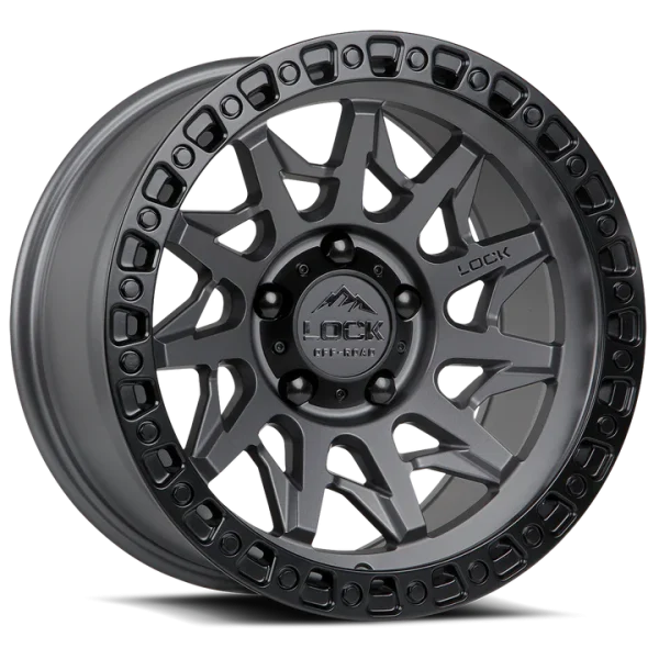 18″ LOCK OFF-ROAD WHEELS LUNATIC MATTE GREY MATTE BLACK RING FINISH RIMS