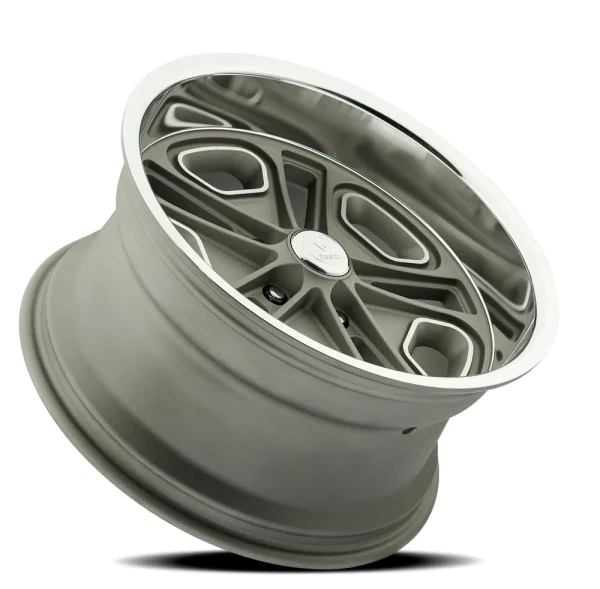 18″ RESTO WHEEL CO R102 DEL RAY TEXTURED GUNMETAL CENTER WITH MILLED WINDOW AND DIAMOND CUT LIP RIMS
