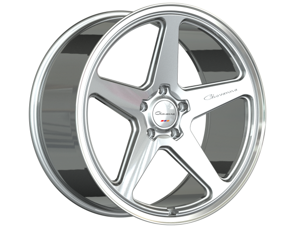 22" GIOVANNA WHEELS CINQUE GLOSS SILVER POLISHED LIP FINISH FLOW FORMED RIMS